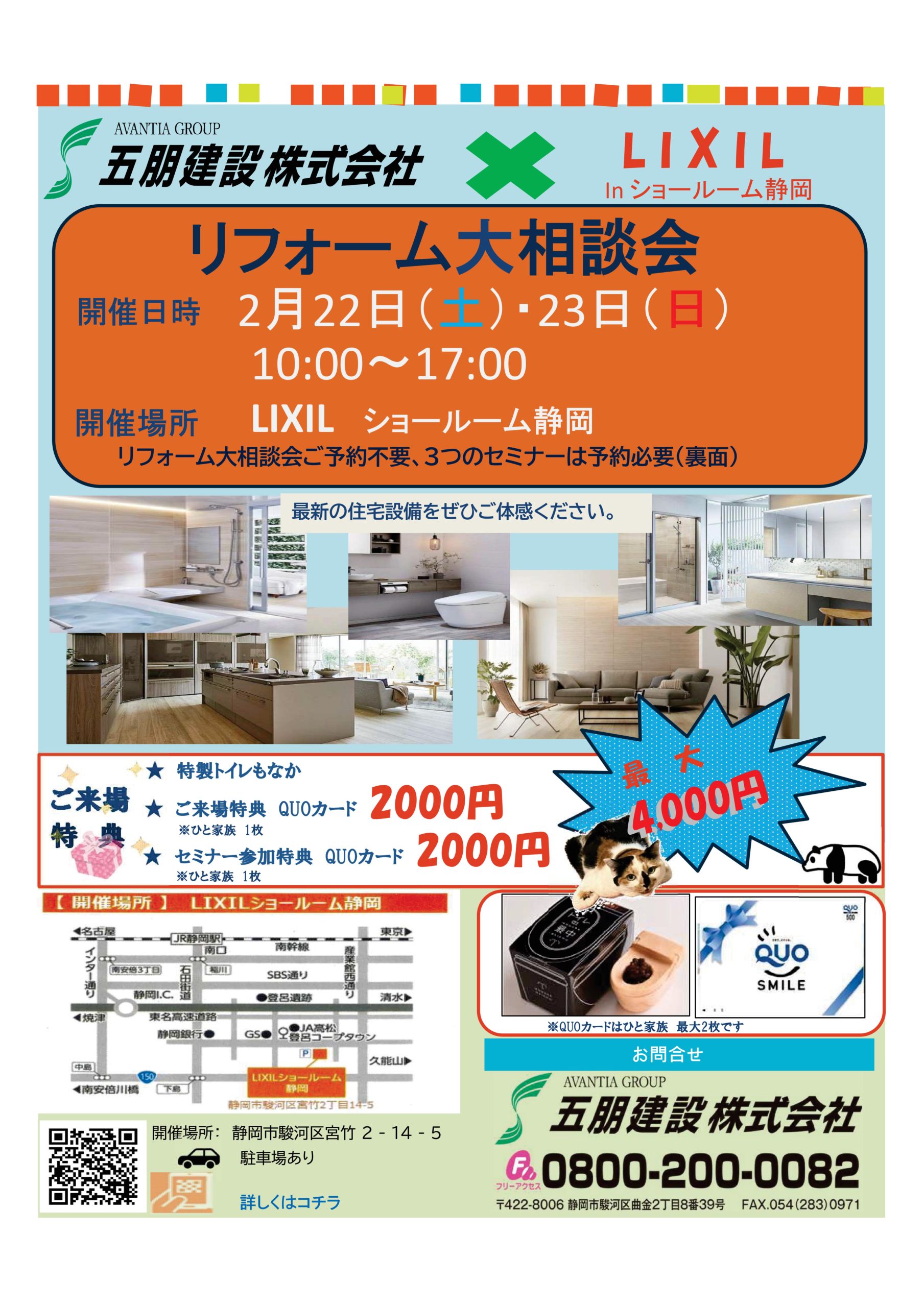 ☆リフォームイベント開催決定☆ 2025.02.10未分類 2月22日・23日 リフォームイベント開催決定しました!(^^)! ご来場特典もありますよ(>_<) たくさんのご来場お待ちしておりますm(__)m 五朋建設はインスタも随時投稿してます!! こちらもチェックしてみてくださいね(^^) ▶インスタはこちらから☟