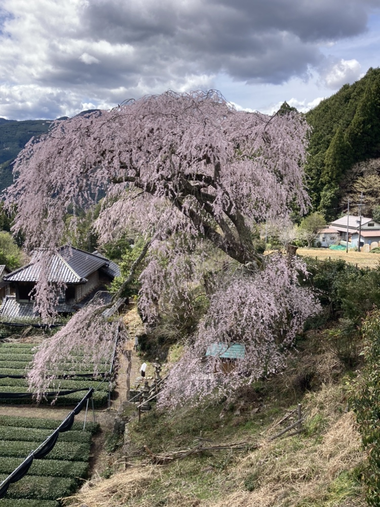 静岡にお茶と栽培方法を伝えた「聖一国師」の生家「米沢家」にある樹齢300余年と言われる大枝垂れ桜。