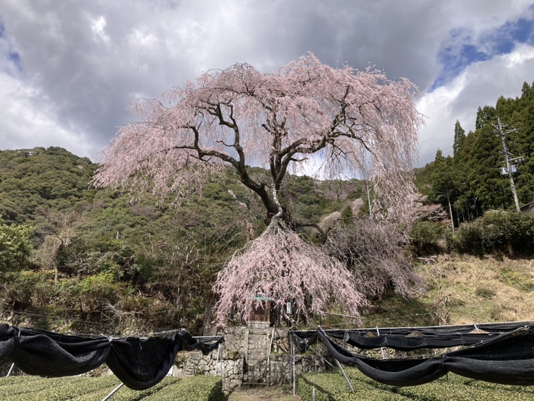 静岡にお茶と栽培方法を伝えた「聖一国師」の生家「米沢家」にある樹齢300余年と言われる大枝垂れ桜。