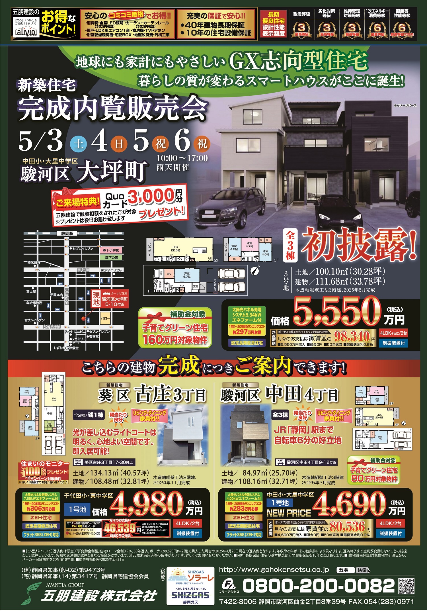 藤枝市田沼に2棟、静岡市駿河区大坪町に3棟