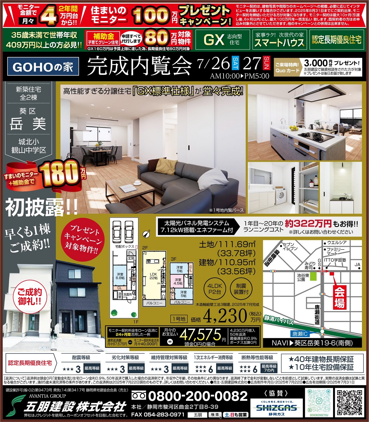 静岡市葵区岳美エリアに、最新GX標準仕様のスマートハウスが堂々完成!