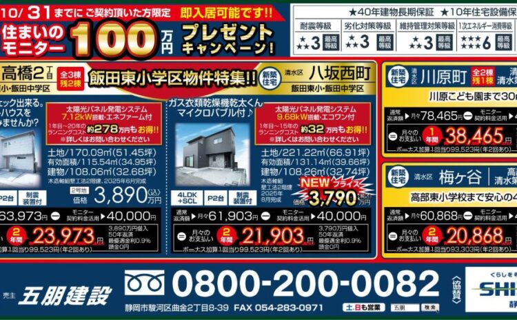 2025.10.02新築建売情報★住まいのモニターキャンペーン100万円キャッシュバック ★