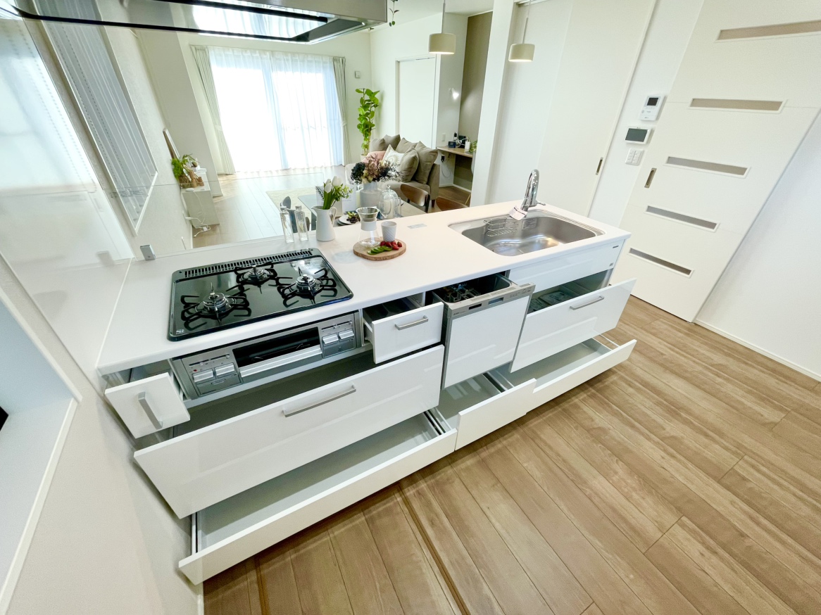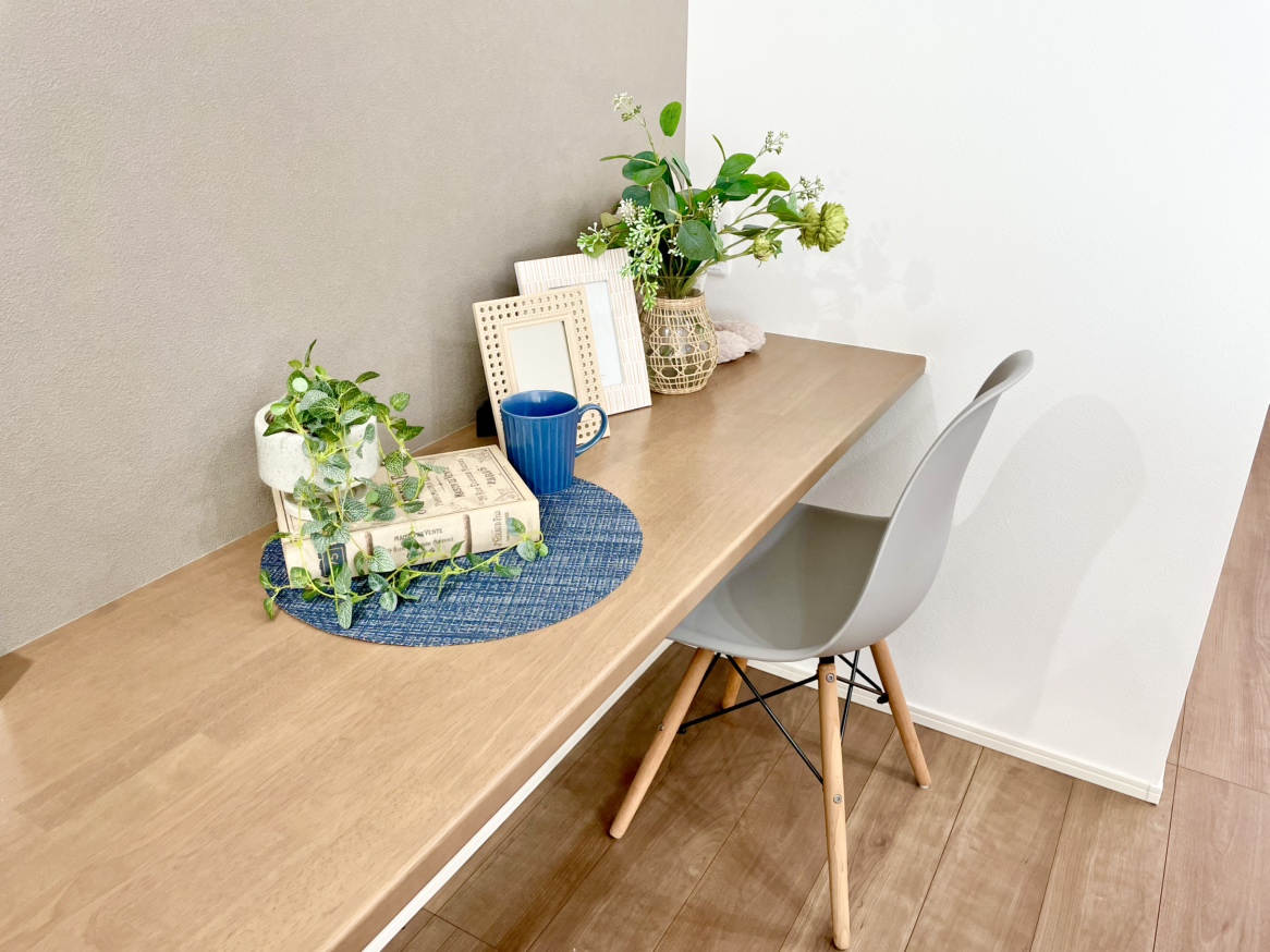 スタイリッシュなキッチンに加え、テレワークやお子様の学習にも使える便利なカウンター付き。