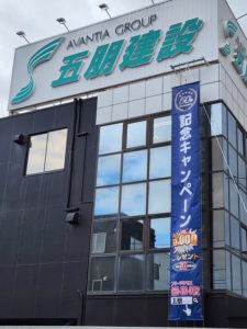 GO/GO/GO 2024.04.30チラシ・広告 五朋建設本社社屋の ロードサイドのテント幕を 新しくしました(^^)/ ただ今 五朋建設創立50周年記念 総額5,000万円 先着50棟限定 のキャンペーンを開催中です! お早めに お問い合わせください!(^^)! 弊社の取扱い物件 (こちらをクリックいただきますと五朋建設ホームページに飛びます)