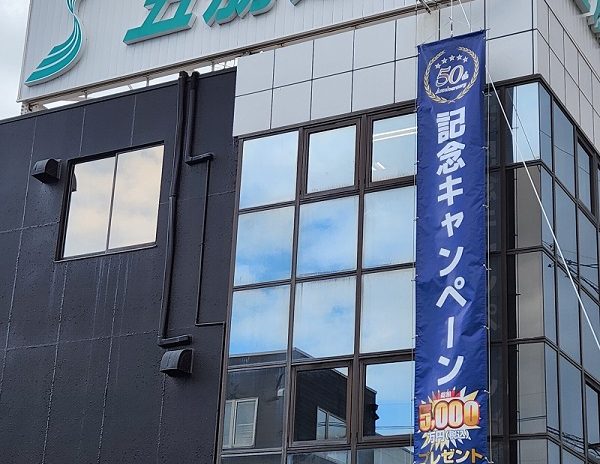 五朋建設本社社屋の ロードサイドのテント幕を 新しくしました