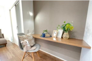 リビングは21帖の大空間!スタイリッシュなキッチン&ワークスペースとしても活躍するカウンター机も設置!ご家族みんなでゆったりとくつろげます。