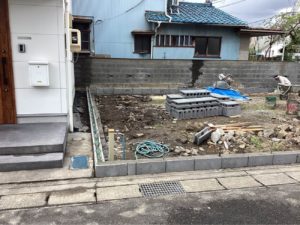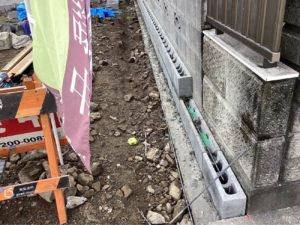 音羽町1期建売住宅 境界ブロック工事始まりました。 終わり次第基礎工事に着手します。