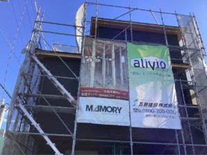 音羽町1期建売住宅の外壁工事ですが、天気にも恵まれ、順調に進んでいます、来週末には足場バラシの予定です。