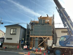 有東10期建売住宅・東千代田2期建売住宅 上棟しました。 2026.04.09未分類 有東10期建売住宅 と 東千代田2期建売住宅 上棟しました 天気にも恵まれて、無事上棟完了しました、急いで外部をまとめて行きます この地域で、建売を探している方は、GX志向型住宅なので、一度ぜひ見に来て下さい