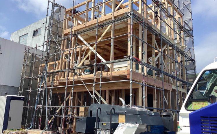 中原1期建売住宅 木工事がほぼ完了しました、太