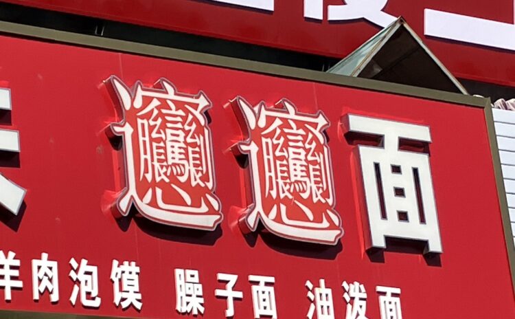 西安名物 びゃんびゃん麺 この文字はこの麺のために作られた文