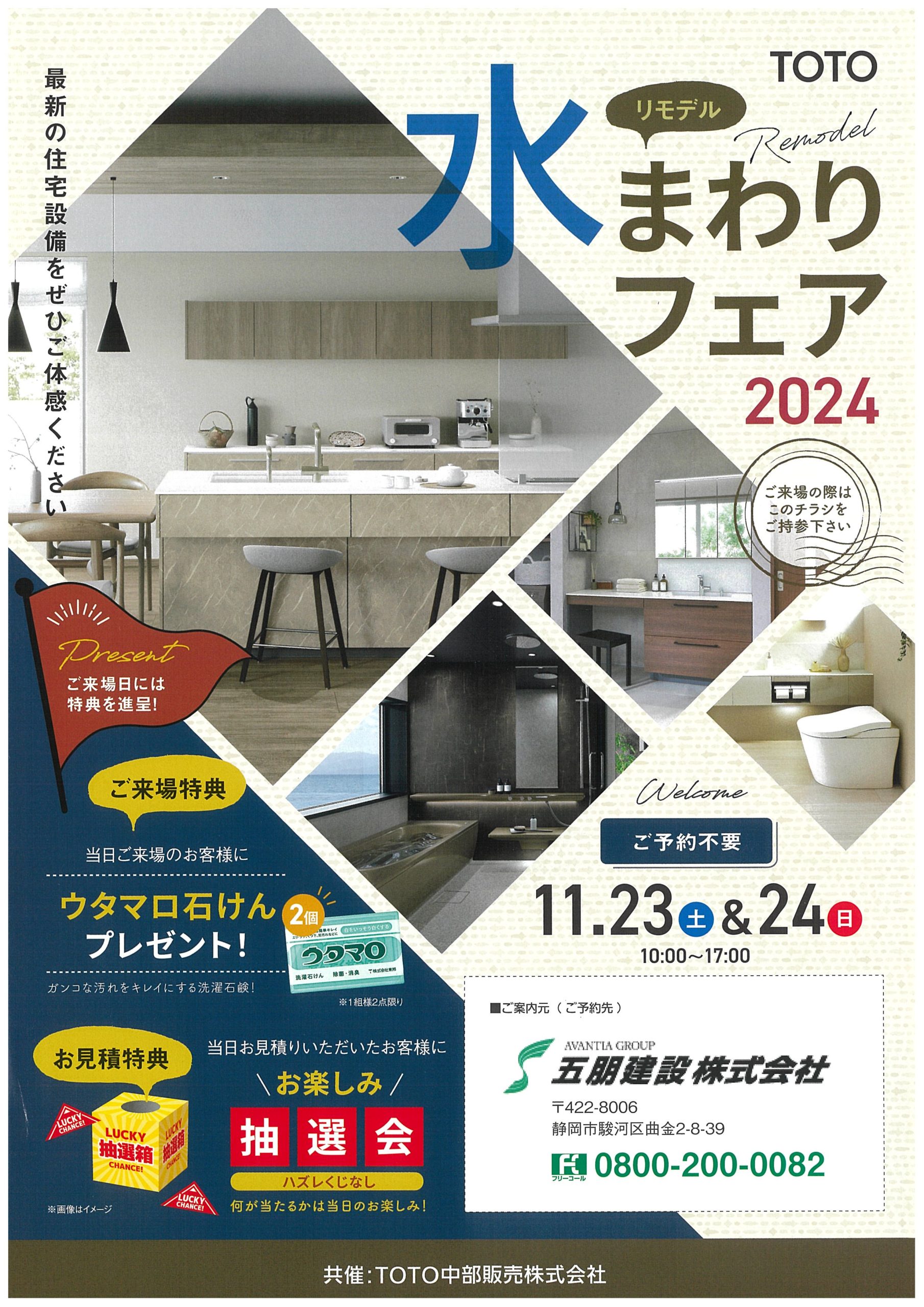 TOTO水まわりフェア2024 ~秋~ 2024.11.21未分類 11月23日、24日にTOTOにてイベントが開催されます。 弊社もTOTOさんのショールームにてブースを出店致します。 水廻りリフォームはもちろん、些細なことでも承ります。 ご来場お待ちしています。