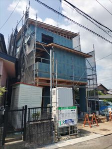 大雨と猛暑 2023.08.24建設部河野 最近の天気にはもうウンザリ。 台風・豪雨が続いたと思えば、連日の猛暑。 楠新田3期も影響を受けました。 夏季休暇前の上棟予定でしたが、台風の急激な進路変更のため、休暇明けに延期。 ようやく上棟を迎えましたが、この連日の暑さで作業効率もややダウン。 熱中症には、十二分に注意したいものです。