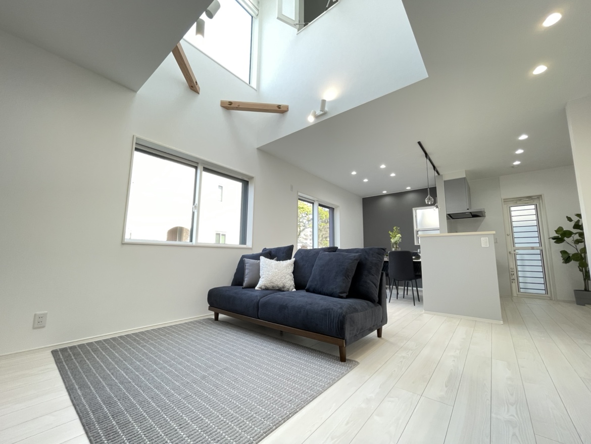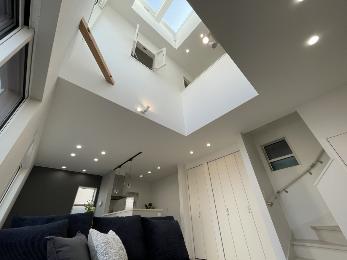 光が降りそそぐ吹き抜けと、家族を支える高性能設備を備えた住まい。
