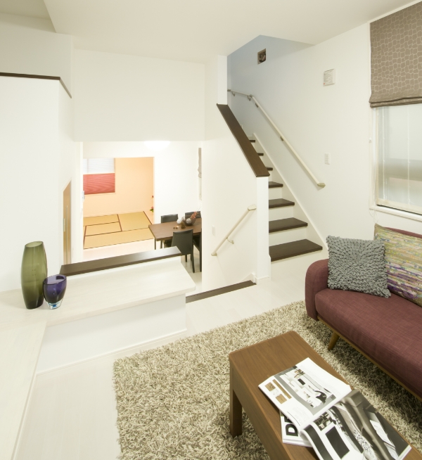 - 空間の容積を増やすスキップフロアは、フラットな空間では味わえない遊び心あふれる住まいを実現します。限られた空間の中でも、段差による視覚効果で広がりが生まれ、暮らしにアクセントを添えてくれます。