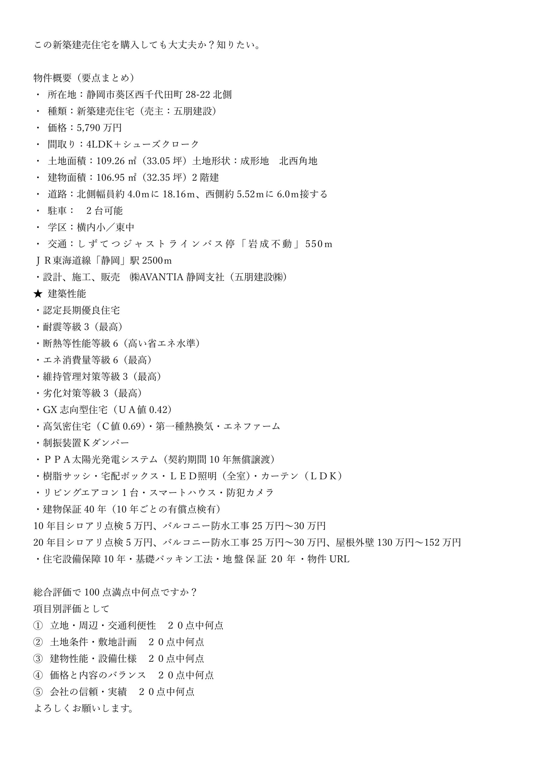 葵区西千代田町3期1号地 住宅性能