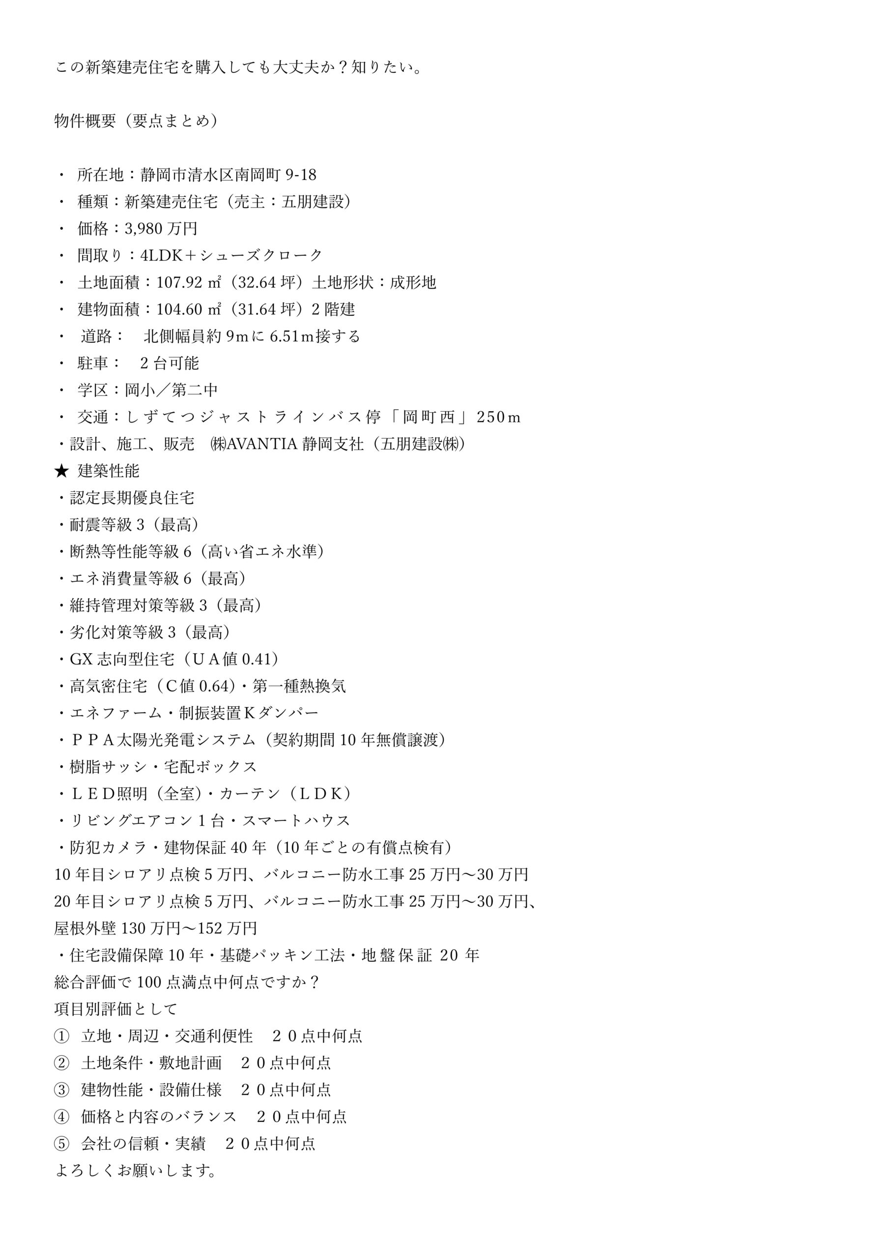 ★南岡町1期1号地はChatGPTによると⇒総合評価:100点満点中92点です★