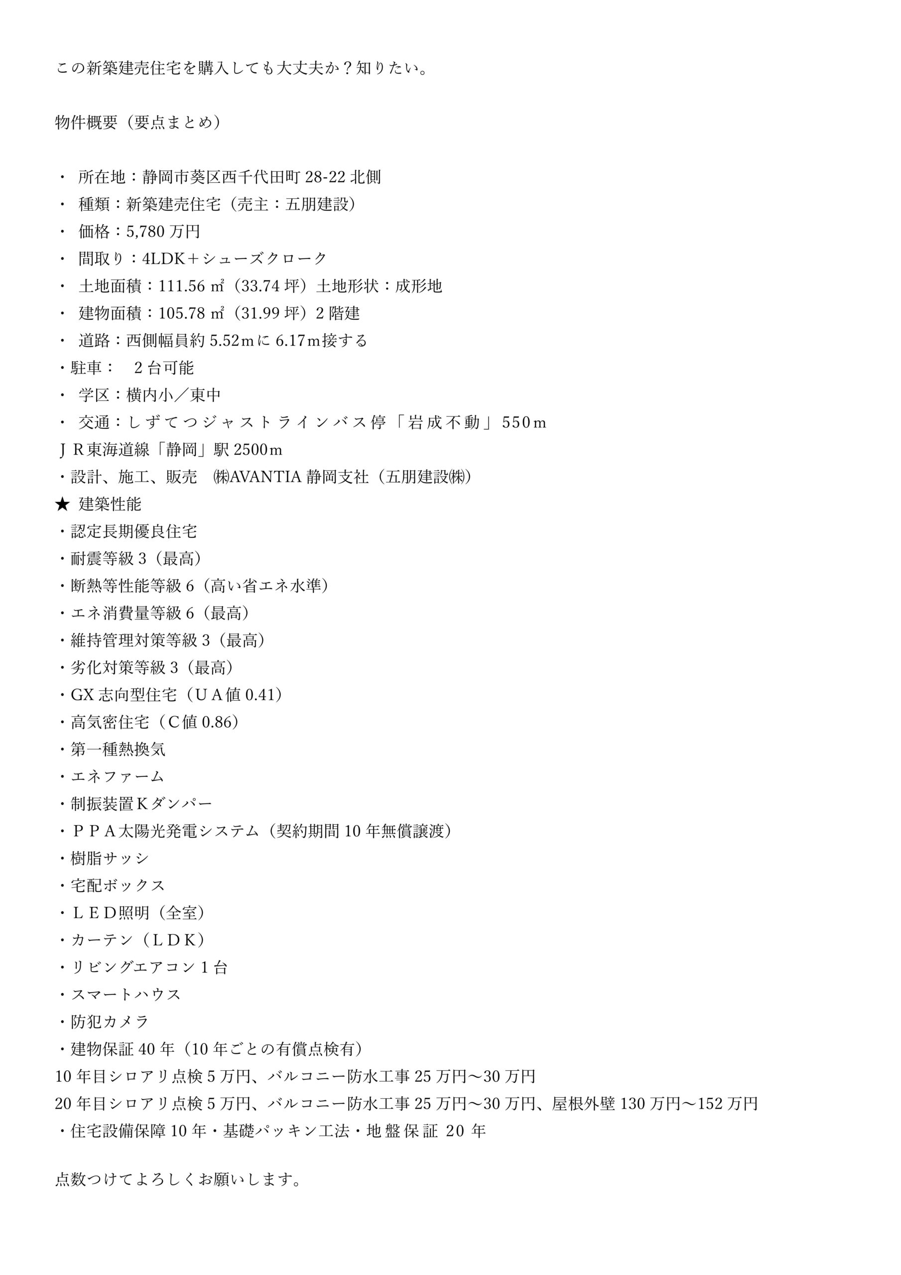 ■検索→葵区西千代田3期3号地 住宅性能