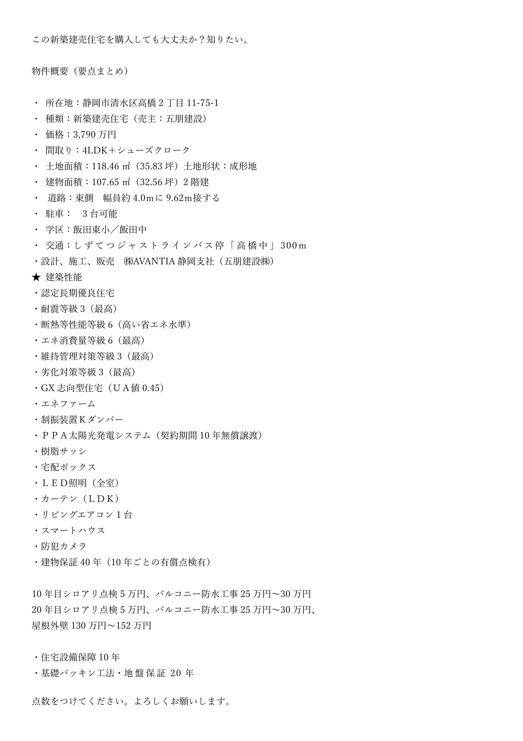 ★高橋1期1号地はChatGPTによると⇒総合評価:100点満点中90点です★