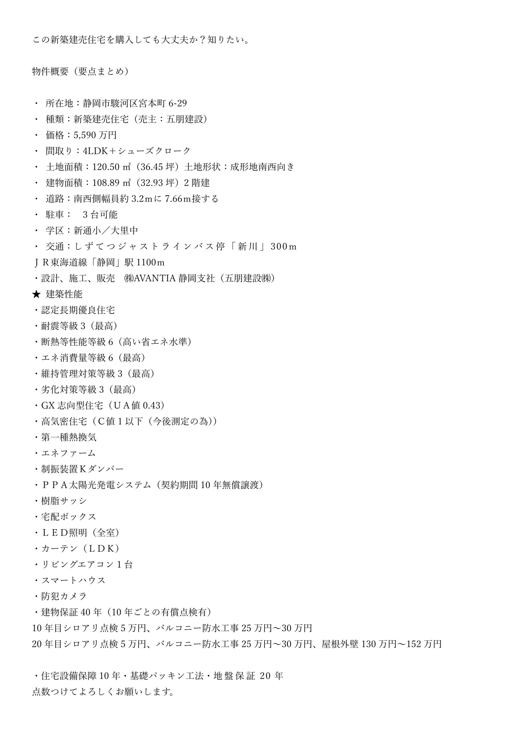 ■検索→駿河区宮本町1期1号地 住宅性能