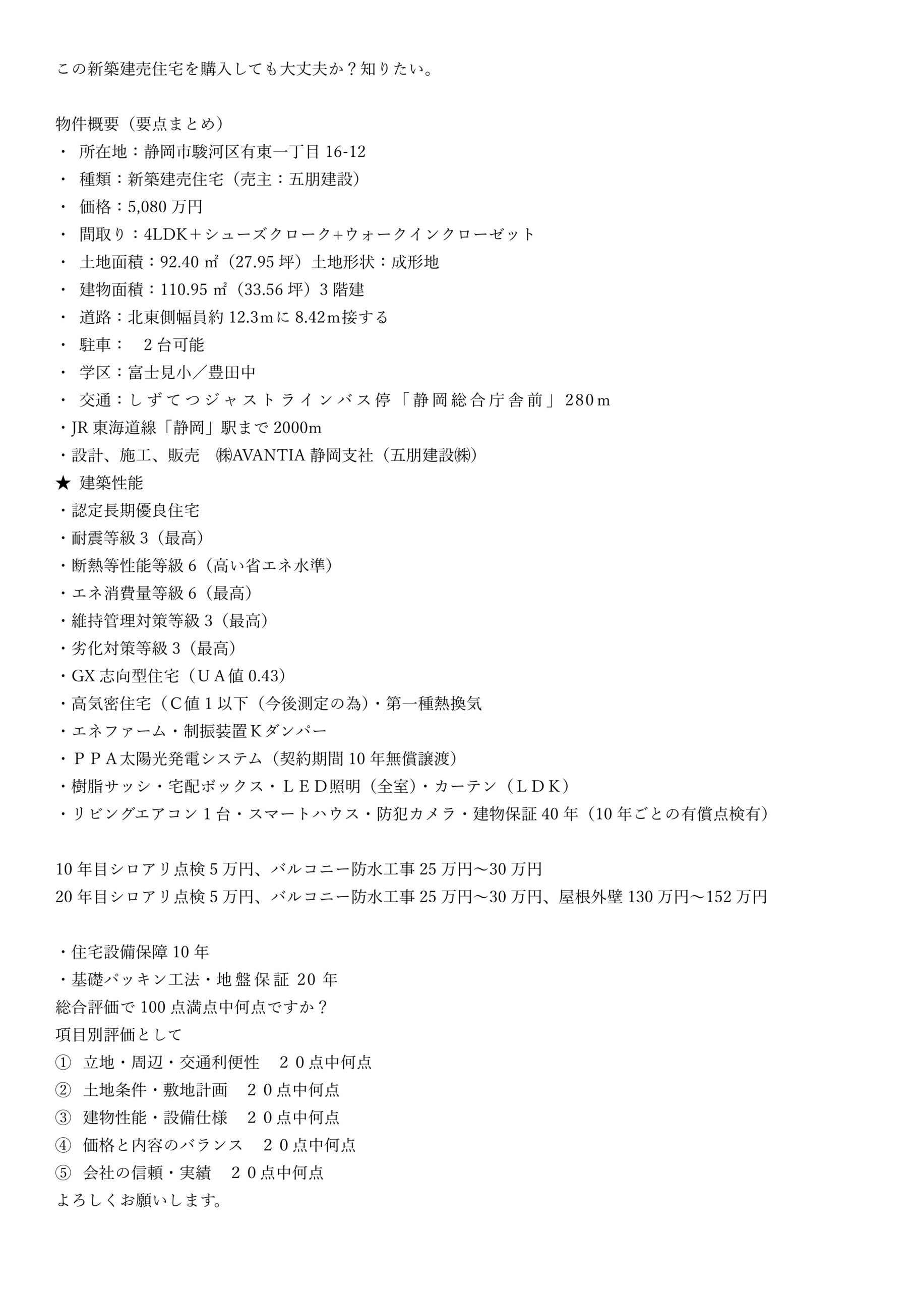 ■検索→駿河区有東10期 住宅性能