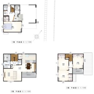 - 木造軸組壁工法・制震装置付3階建