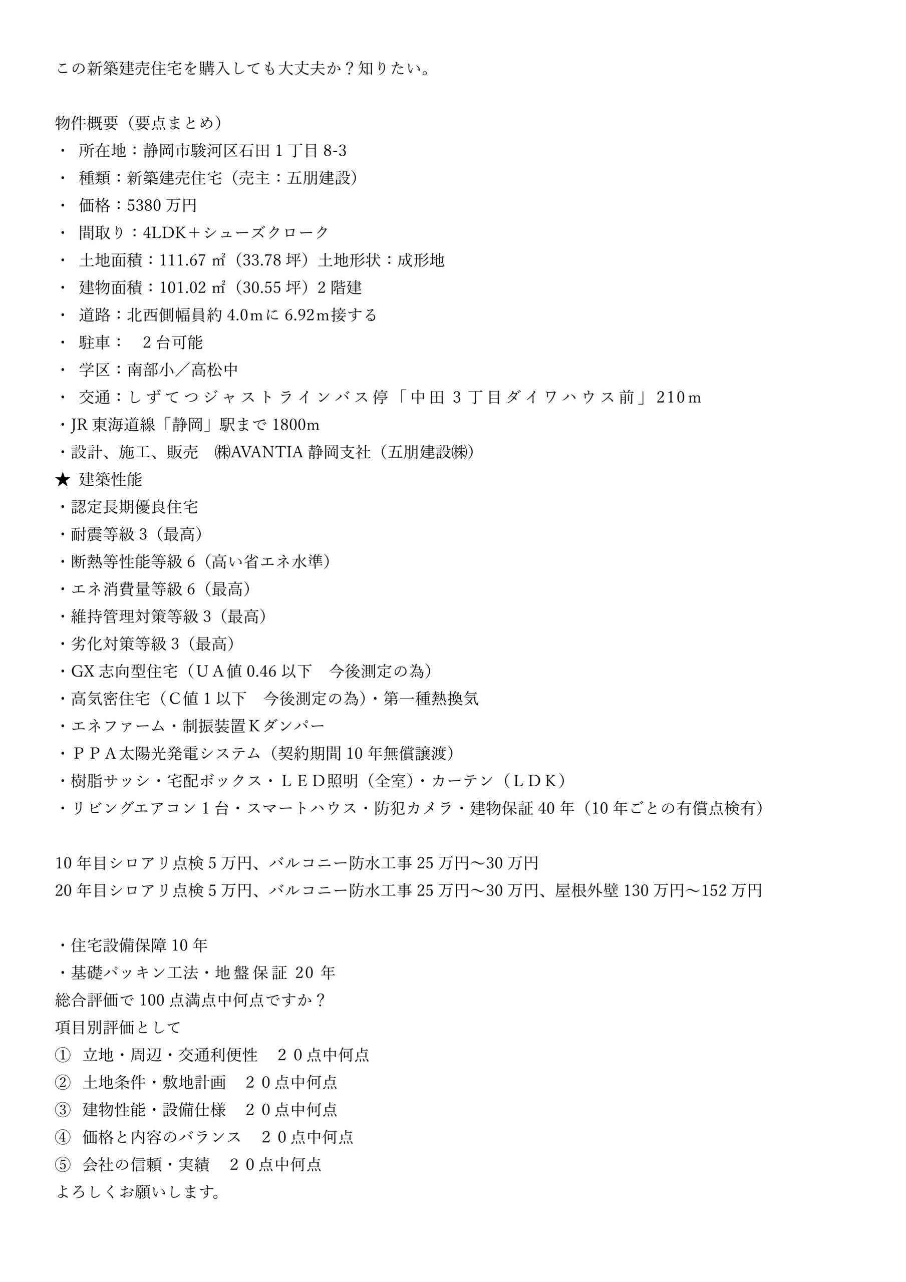 ■検索→駿河区石田5期1号地 住宅性能