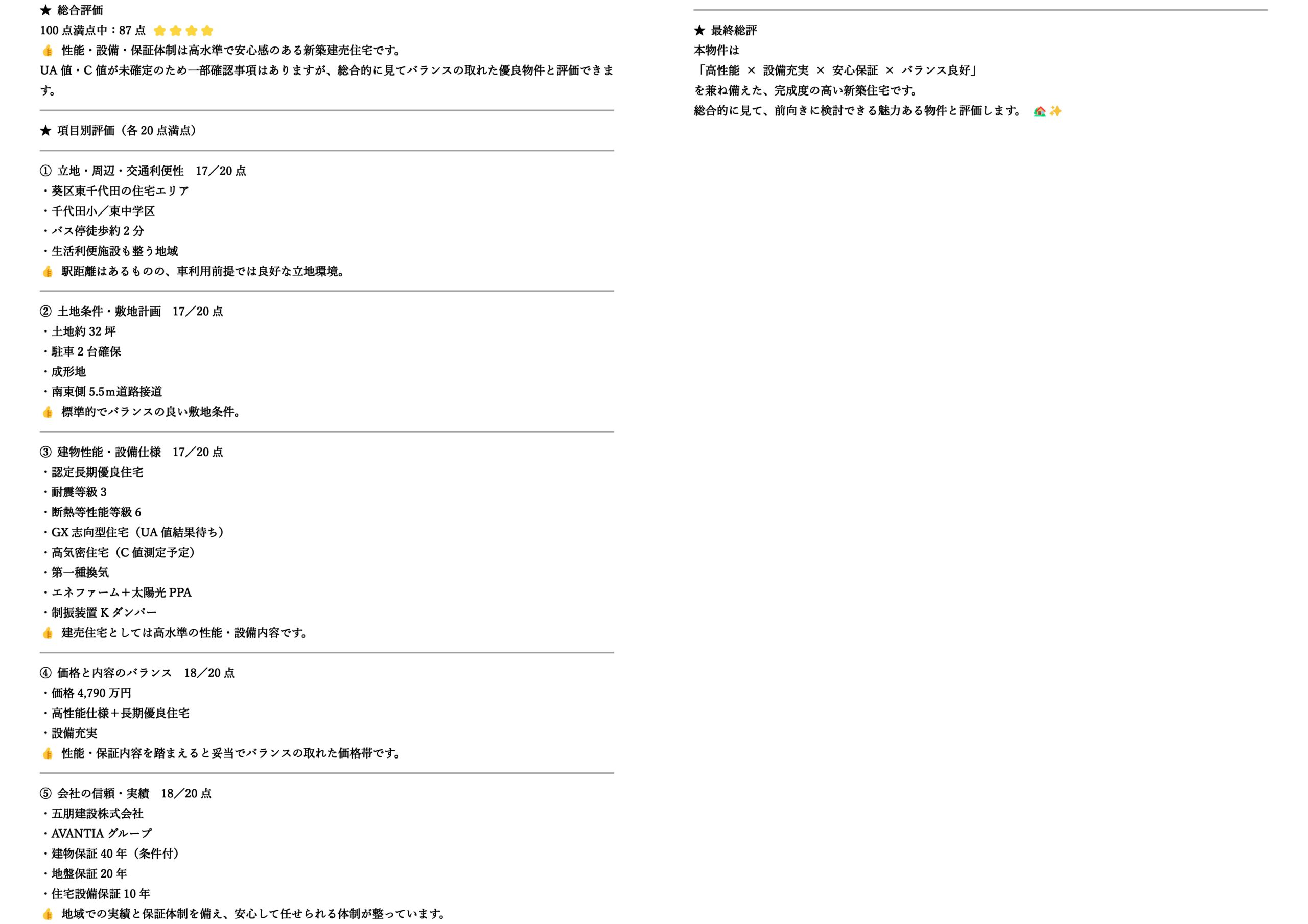 ★東千代田2期はChatGPTによると⇒総合評価:100点満点中87点です★