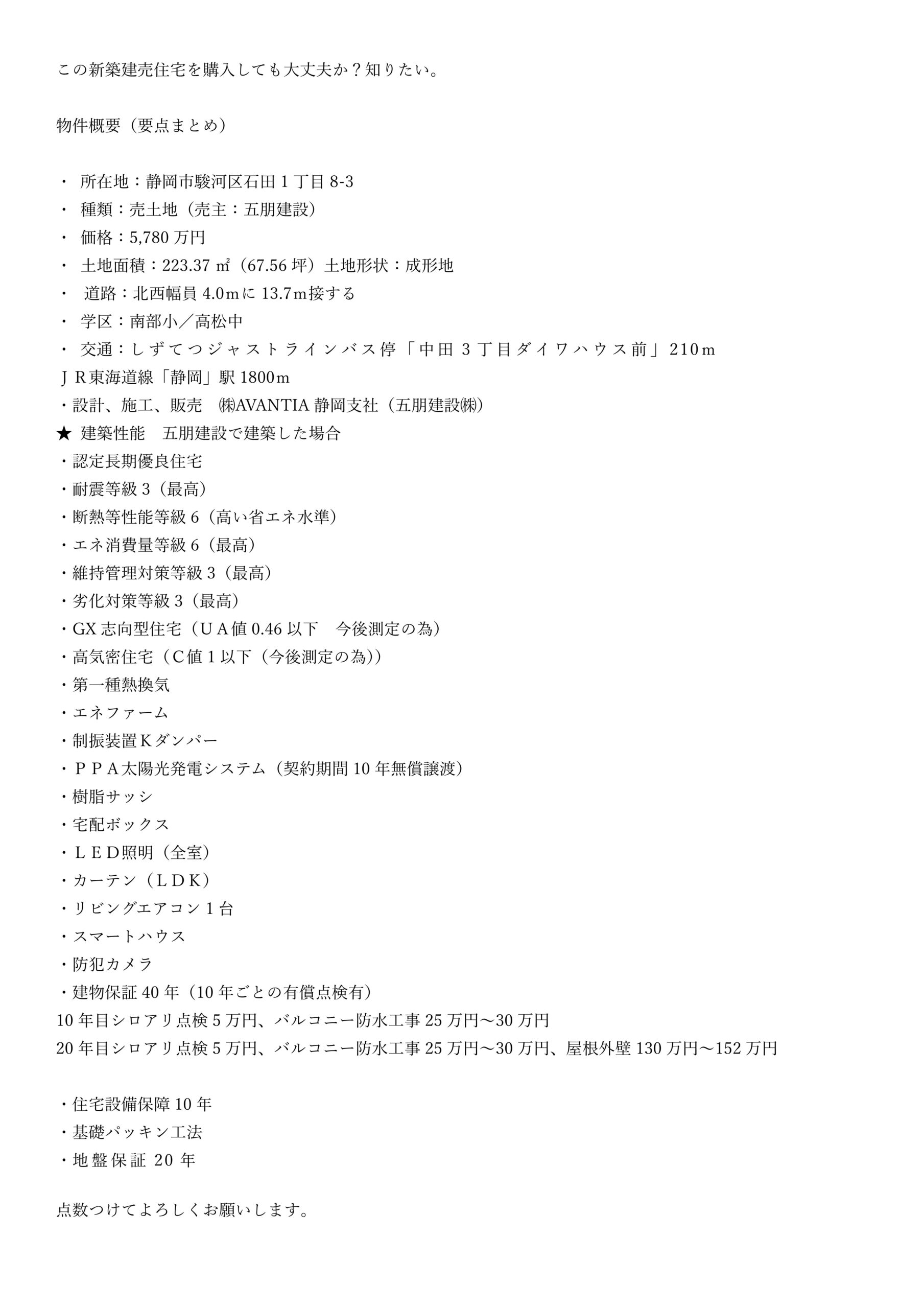 ■検索→駿河区石田5期 住宅性能