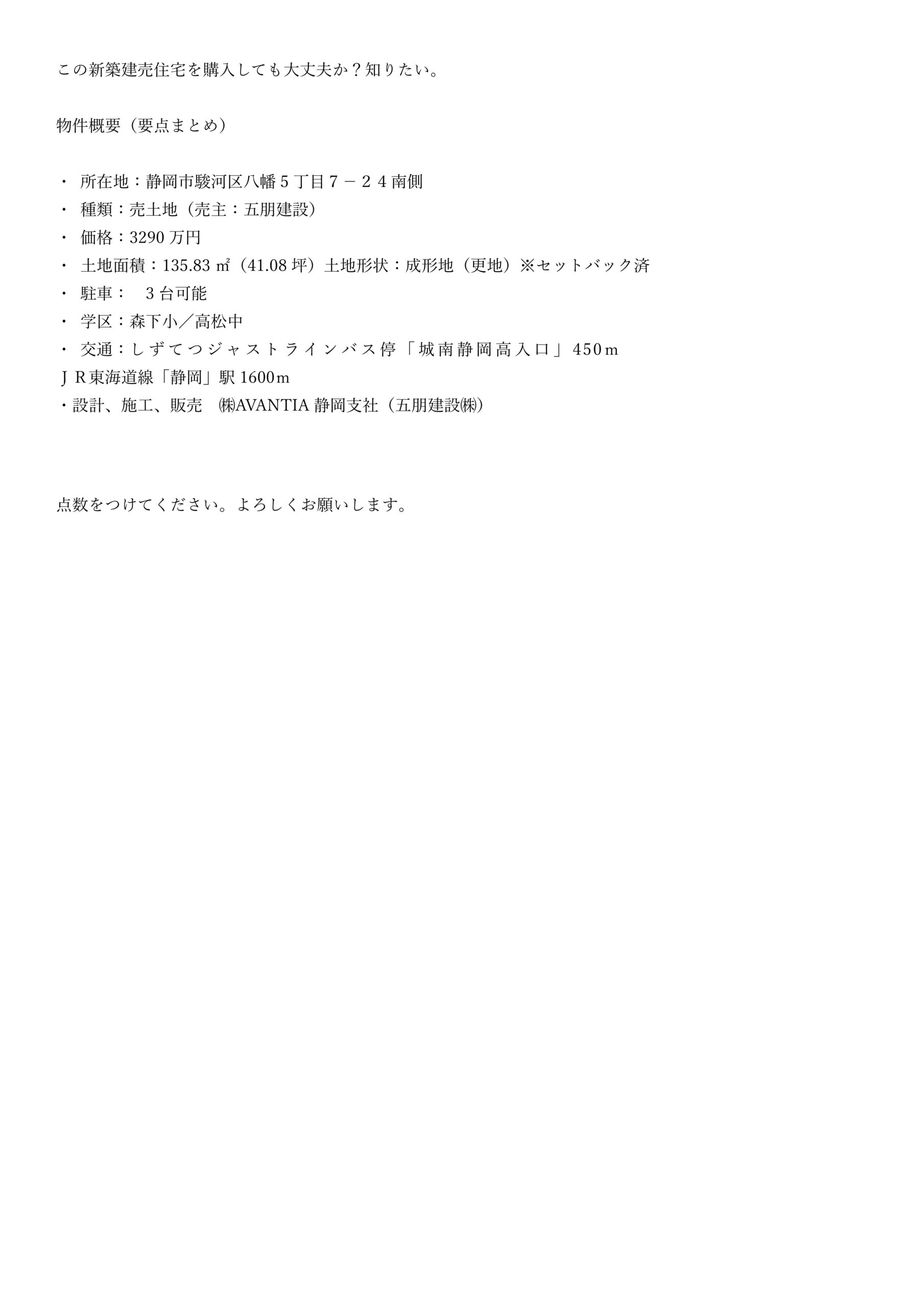 - 静岡市駿河区八幡5丁目7-24南側 Google mapで確認